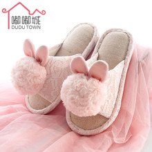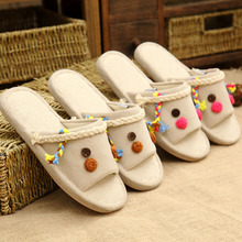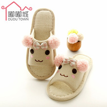 亚麻凉拖鞋夏季春秋防滑厚底可爱蕾丝室内居家棉麻儿童家居拖鞋女