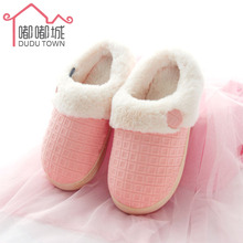 冬天厚底保暖格子儿童家居拖鞋防水室内毛毛鞋 可爱包跟棉拖鞋女