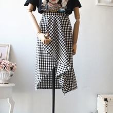 2017夏装新款女装韩范复古文艺百搭不规则格纹棉麻半身裙中长裙潮
