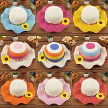 春夏天韩版儿童帽子宝宝女孩公主遮阳沙滩帽儿童草帽小孩防晒盆帽