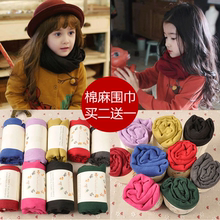 春款韩版儿童围巾围脖棉麻围巾秋冬纯色男女童宝宝围巾亲子围脖
