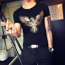 社会小伙短袖t恤男潮韩版修身夏天日系个性老鹰刺绣半袖夜店小衫