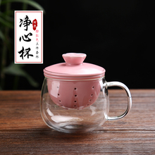 DH 过滤 茶杯陶瓷 家用耐热透明玻璃 带盖泡茶杯 花茶杯 杯子套装