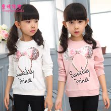 中大童春秋新款女童休闲圆领卫衣T恤儿童纯棉长袖百搭打底衫上衣