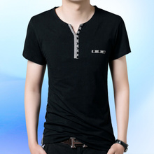 17夏装男士加肥加大码短袖T恤肥佬胖人V领纯色纯棉半袖打底衫显瘦