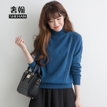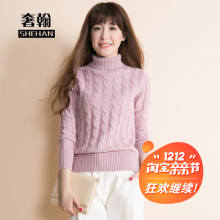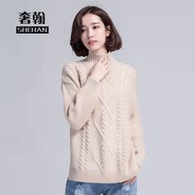 奢翰 新款高领羊绒衫百搭韩版短款套头麻花毛衣大码女装针织衫