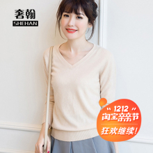 2016新款V领羊绒衫女针织衫套头纯色打底衫大码毛衣修身