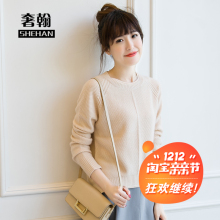 2016秋冬新款羊绒衫女短款纯色针织打底衫宽松长袖毛衣圆领套头