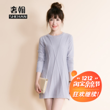 2016秋冬女圆领羊绒衫套头毛衣针织衫中长款纯色扭花加厚连衣裙