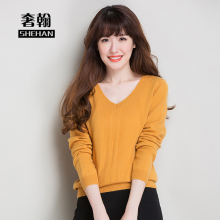 秋冬新款V领羊绒衫女式修身打底毛衣套头纯色百搭时尚短款针织