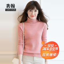 秋冬新款高领套头女毛衣 韩版修身加厚羊绒衫纯色麻花针织打底衫