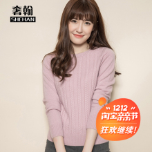奢翰 2015秋冬新款 女士羊绒衫圆领套头加厚提花打底衫百搭毛衣