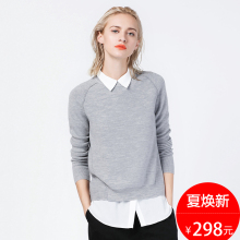 梅湾街2017春季新款假两件针织衫女套头羊毛衫衬衫领毛衣女外套潮
