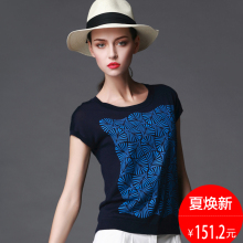 梅湾街夏季新品女装针织体恤衫韩版修身印花t恤女大码打底短袖衫