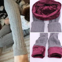 秋冬款加厚超柔双层针织麻花打底裤加绒修身毛线大码外穿长裤子