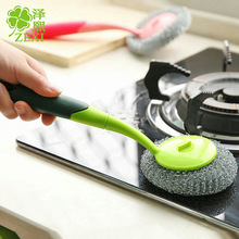 彩色长柄带钢丝球洗锅刷 厨房可挂式塑料清洁刷子 去油污洗碗刷