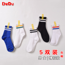 男女袜子包邮二条纹三条杠运动文艺学院风全棉棒球袜情侣—盒装