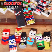 情侣袜子女袜子男袜子动漫居家全棉中筒船袜卡通超人可爱—盒装