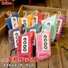 粗针粗线女袜子 包邮外单女士全棉中筒秋冬复古明星同款嘟嘟袜子