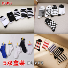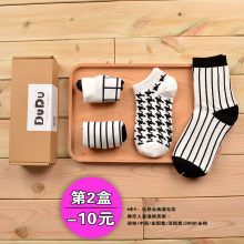 黑白文艺风 潮袜复古千鸟格竖条纹袜子女船袜短袜棉袜子—盒装