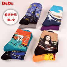 复古风世界名画油画袜子全棉女款吻蒙娜丽莎星空呐喊男袜情侣袜子