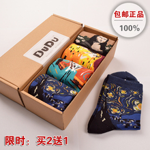 情侣袜子 女袜男袜创意中性全棉卡通动物创意中筒多彩袜—盒装