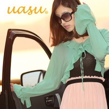UASU2016韩版夏天户外骑车开车荷叶边纯色长袖防晒披肩防晒遮阳衫