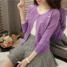 2017春夏新款刺绣爱心针织开衫女圆领修身短款百搭外套空调衫春秋