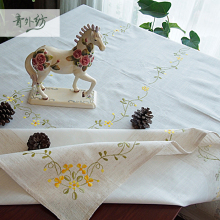外贸 欧式 新中式 古典 双层刺绣 田园 花朵 桌旗 桌布 茶几盖布