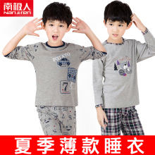 南极人男孩卡通睡衣夏季纯棉薄款长袖圆领宝宝儿童学生家居服套装