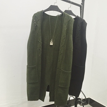 春秋季韩版中长款显瘦针织开衫女 纯色柔软毛衣长袖外套