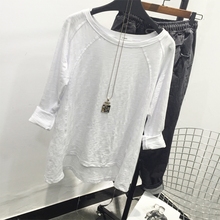 韩国拼接插肩袖纯白色超百搭打底衫 春装内搭显瘦t恤女新品