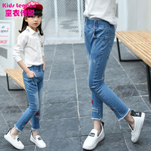 儿童牛仔裤中大童牛仔长裤2017春季新款休闲裤韩版女童弹力裤子潮