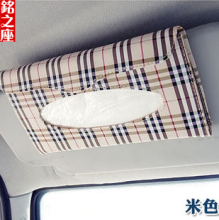 铭之座汽车用品遮阳板纸巾盒车用纸巾盒抽纸米色格子内饰装潢车品