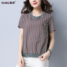 棉麻短袖T恤女 夏装新款大码女装胖MM显瘦修身短款宽松半袖打底衫