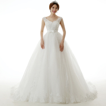 一字肩婚纱礼服2017春季新款宫廷公主蕾丝双肩修身绑带包肩小拖尾