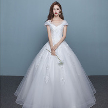 2017新款韩版一字肩婚纱修身短袖大码新娘婚纱礼服齐地蓬蓬裙春夏