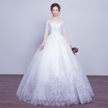 2016春夏季新款新娘齐地婚纱礼服一字肩中袖蕾丝花朵韩式简约显瘦