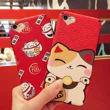新款招财猫iphone6plus手机壳软硅胶苹果6硅胶套6plus挂绳保护套