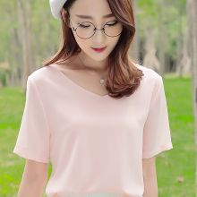 搏刻雪纺衫女春夏季新款上衣女夏学生短袖宽松v领中长款T恤