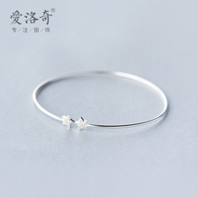爱洛奇 925银手镯女韩版甜美简约细镶钻五角星手镯星星手环女