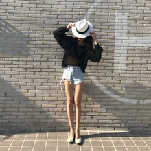 YUOTA 2017春季新款雪纺衫女长袖韩版百搭春款宽松喇叭袖打底上衣