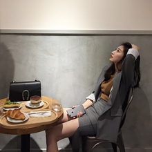 YUOTA 2017春季新款韩版灰色条纹西装小外套西服春秋外套女上衣潮