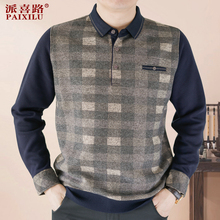 春季2017新款中年加厚假两件男士毛衣 中老年爸爸装宽松针织衫