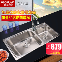 ARROW箭牌水槽套餐 加厚不锈钢双槽AE2401带水龙头沥水篮
