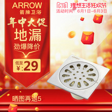 ARROW/箭牌地漏卫浴拉丝不锈钢防臭防堵芯卫生间洗衣机地漏正品