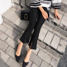 2017新款个性裤脚开叉微喇叭裤女九分裤潮高腰修身黑色薄款休闲裤