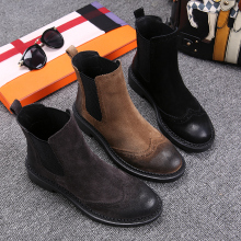 2016秋冬新款女鞋英伦风真皮平底圆头磨砂皮短靴雕花翻毛皮马丁靴