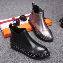 淘小胖女鞋欧洲站2016秋冬新款英伦风真皮厚底松糕底短靴短筒女靴