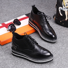 淘小胖女鞋欧洲站2017春季新款英伦风厚底真皮铆钉系带单鞋松糕鞋